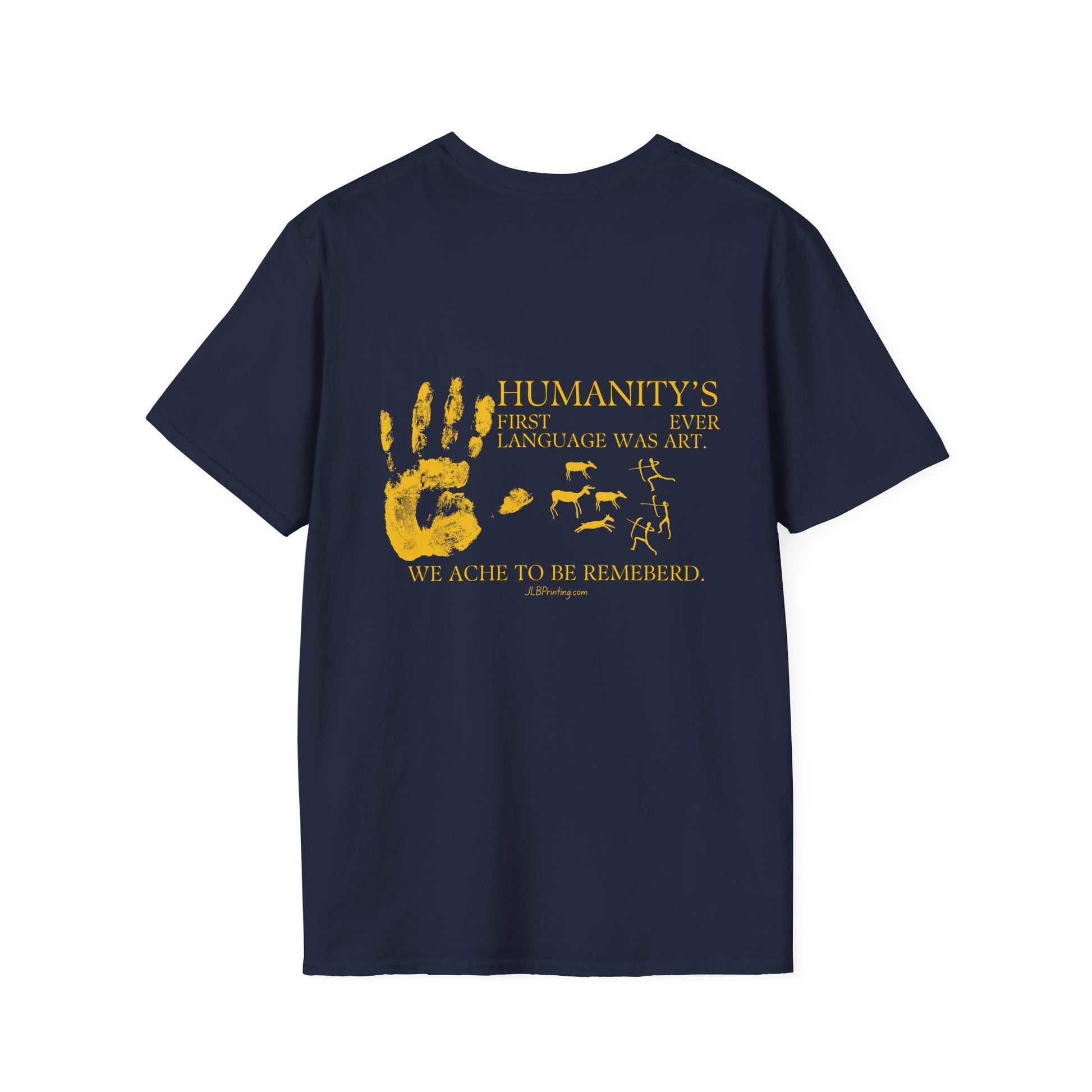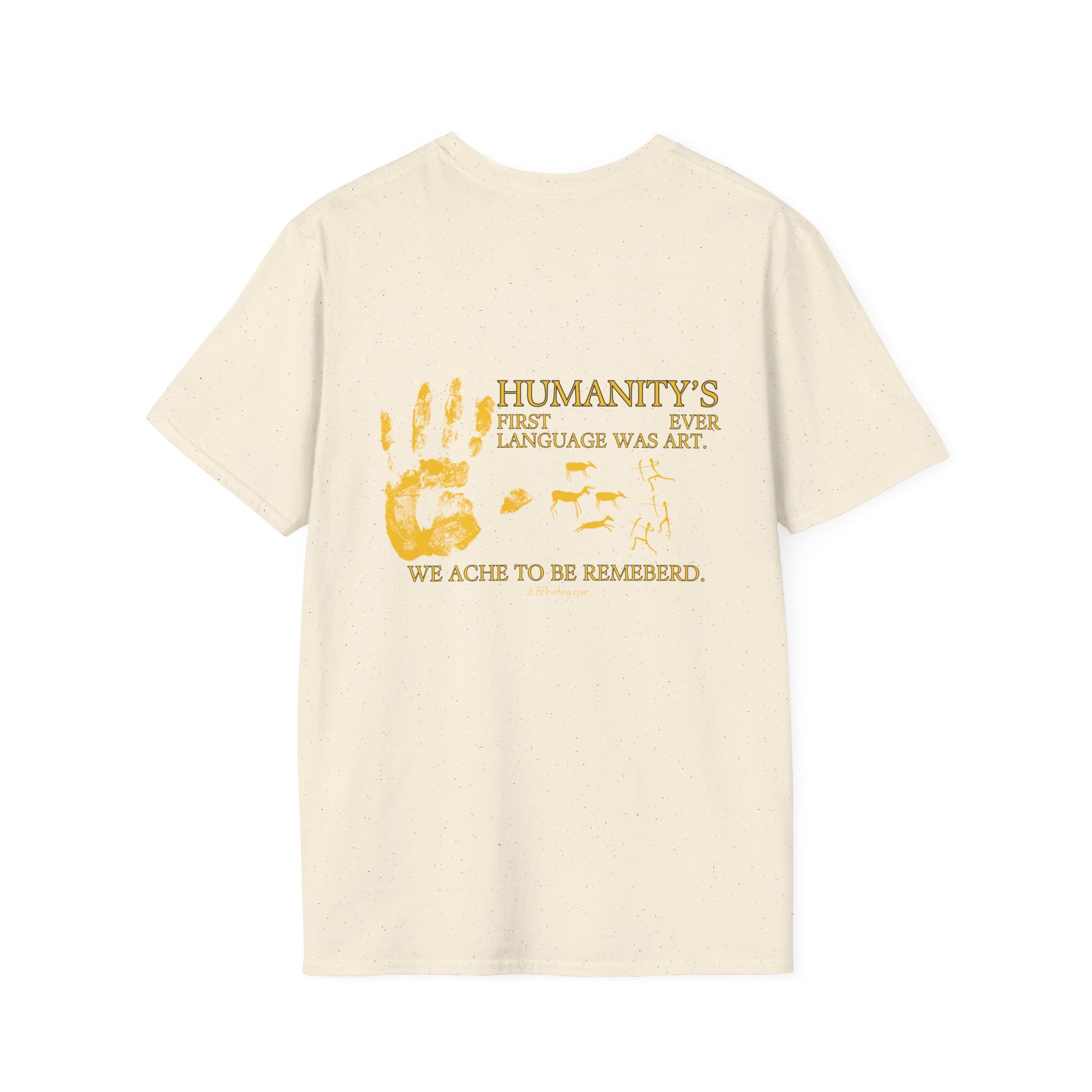 Celebrate the truth that creativity came before words. The Humanity’s First Language Was Art T-Shirt is more than apparel—it's a statement piece for artists, creators, and anyone who believes that expression is our oldest universal language. Paired with the premium comfort of the Gildan Softstyle® 64000, this tee delivers both meaning and unmatched wearability.